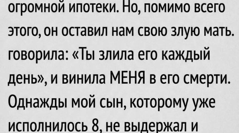 Сын продолжал, голос срывался, но он не останавливался: «Ты не имеешь права! Ты не имеешь права говорить так про мою маму! Папа любил маму! Он сам мне говорил! А ты… ты только злишь всех! Папа умер, потому что сердце… а не потому что мама! Прекрати! Сейчас же!»