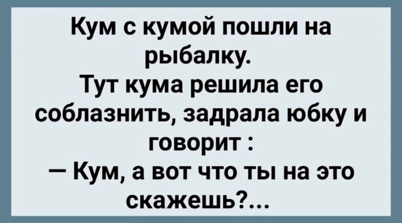 — Кум с кумой на рыбалку ходили — сапог поймали, да настроение хорошее.