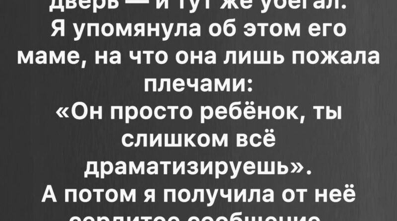 Я прочитала сообщение несколько раз. Мои пальцы дрожали. В голове роились вопросы: как так можно игнорировать очевидное? Почему она не видит, что это уже выходит за рамки обычной детской шалости?