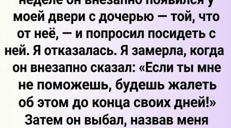 Это имя — его дочь — эхом отозвалось в её голове. Та самая, ради которой он ушёл. Та самая беременность, которая перечеркнула их брак, их дом, их планы.