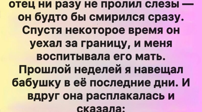 Я приехал сразу. Она лежала маленькая, высохшая, словно из неё медленно выкачали жизнь. Когда она увидела меня, её глаза вдруг наполнились слезами — впервые за всё время, что я её помнил.