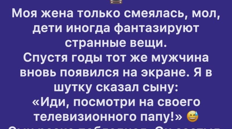 Мы тогда пожали плечами и забыли. Ну сказал — сказал. Детям можно. Время от времени он продолжал так его называть, но без прежней убеждённости. Иногда, когда ведущий появлялся на экране, Денис кидал взгляд и тихо произносил: «Папа пришёл». Но это звучало всё больше как шутка, которую ребёнок подхватил и продолжил — для собственного удовольствия. А мы лишь посмеивались, мол, у ребёнка богатая фантазия, что тут скажешь.