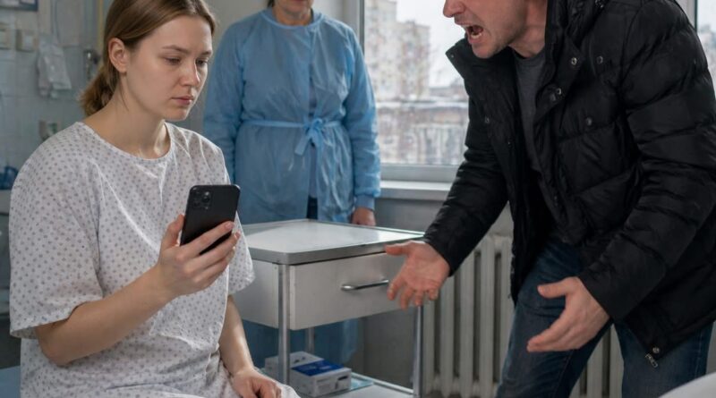 Сумка упала на холодный больничный пол с глухим, почти окончательным звуком — как будто что-то невидимое оборвалось вместе с этим ударом. Молния разошлась, и наружу выскользнули мелочи: пачка влажных салфеток, сложенная вчетверо старая футболка, которую Елена просила привезти для выписки. Простые, почти бесцветные вещи — но в них было больше заботы, чем во всех словах, которые она слышала за последние минуты.