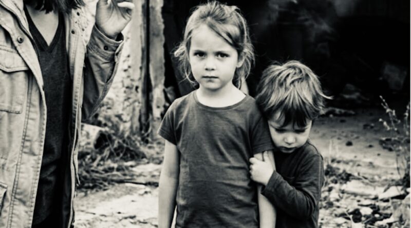 Перед ней стояли два ребёнка, которые прятались в холодном гараже.