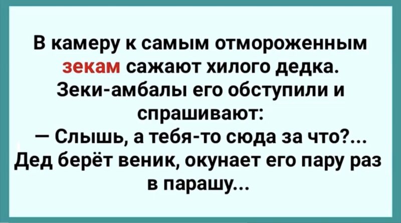 В камеру, рассчитанную на восемь человек, но заполненную двенадцатью, зашёл дед.