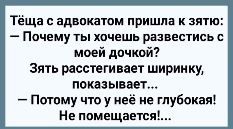 На следующий день Михаил встретил бывшую тёщу на улице. Она улыбнулась, кивнула и прошептала: