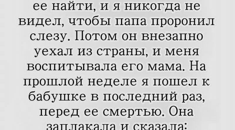 На прошлой неделе я пришёл к бабушке в последний раз. Она лежала в кресле с закрытыми глазами, старые руки дрожали, словно не успевая держать своё тело. Я сел рядом и, впервые за долгое время, мы заговорили не о пустяках, а о настоящем. Её глаза наполнились слезами, и она тихо сказала: «Пришло время тебе узнать правду. Твой…»