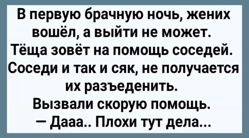 – Соседи! – закричала тёща в окно. – Приходите, Игорь застрял в нашей спальне!