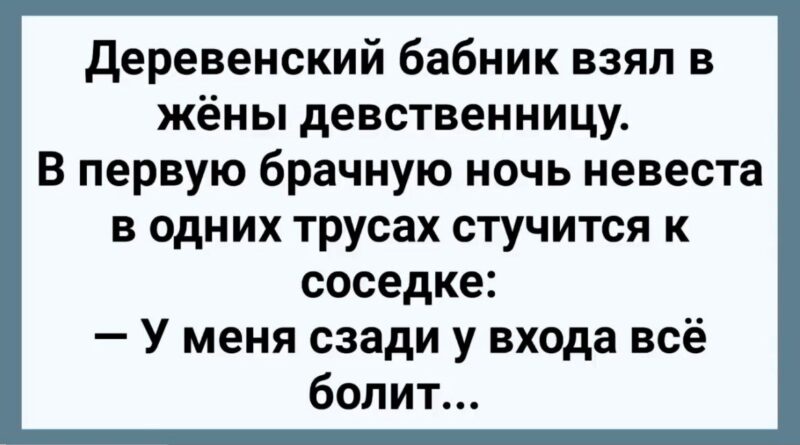 Деревенский бабник взял в жёны девственницу. В первую брачную ночь невеста в одних трусах стучится к соседке…
