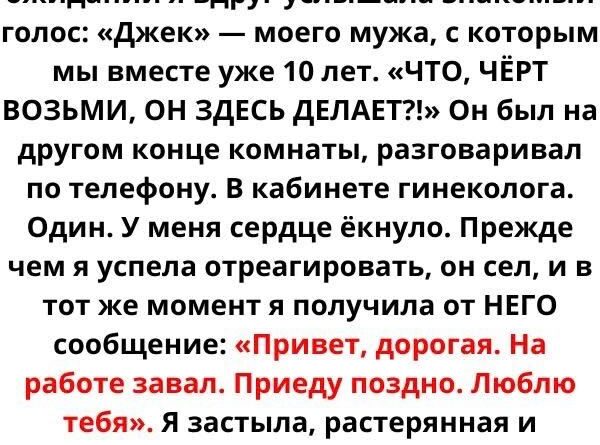 Сев в кресле в ожидании, я достала телефон и попыталась отвлечься на социальные сети, но мысли постоянно возвращались к предстоящему приему. Вдруг, среди приглушенного шума клиники, я услышала знакомый голос. Сначала мне показалось, что я ошиблась, но звук повторился, и моё сердце буквально замерло.