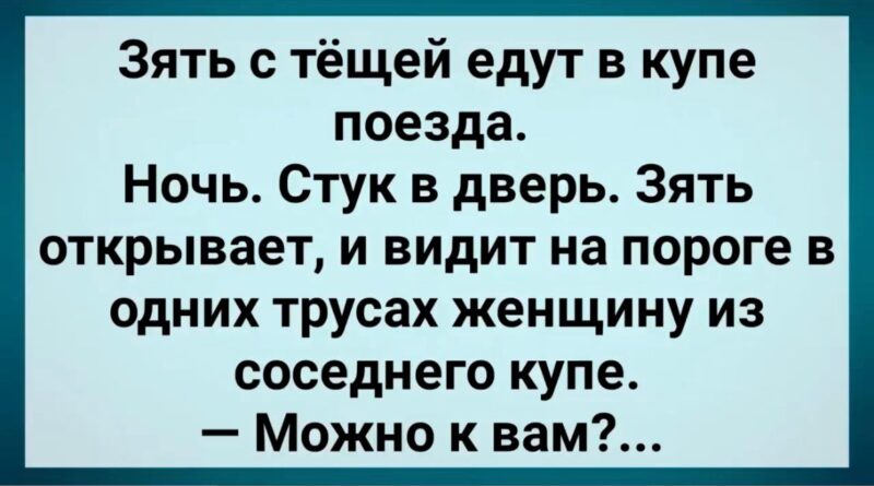 Зять Алексей и тёща Ирина ехали в купе поезда. Ночь, тишина, мерцающий свет лампы. Алексей уже собирался спать, когда раздался неожиданный стук в дверь. Он открыл — и на пороге стояла женщина из соседнего купе, в лёгкой ночной пижаме, с растерянным видом:
