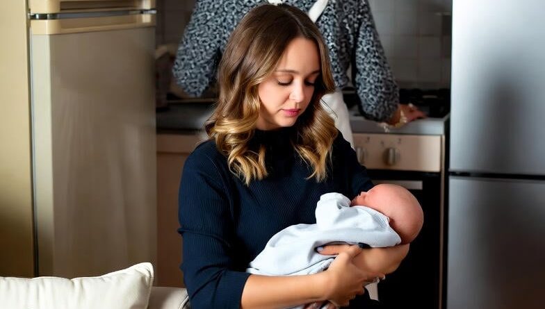 Яна замерла, когда увидела Ларису Викторовну — свекровь стояла у плиты, энергично мешала что-то в кастрюле, волосы уложены, на шее бусы, на губах помада. Казалось, что она готовится к приёму гостей, а не встречает невестку, вернувшуюся из роддома.