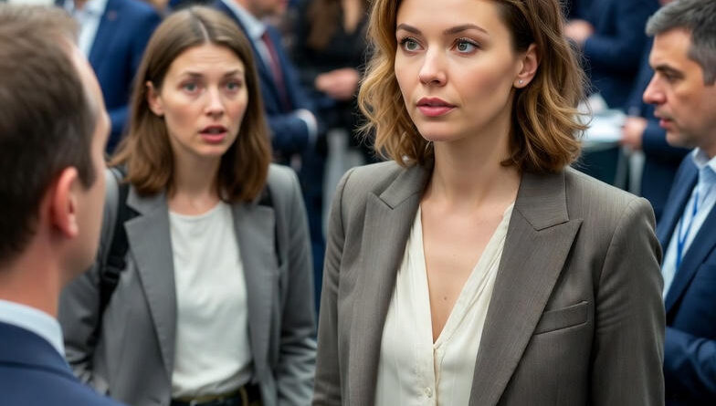 Оля вошла в зал уверенным шагом. На ней был строгий костюм, лёгкий макияж, аккуратный пучок. На груди — бейдж: «Ольга Морозова. Менеджер проекта».